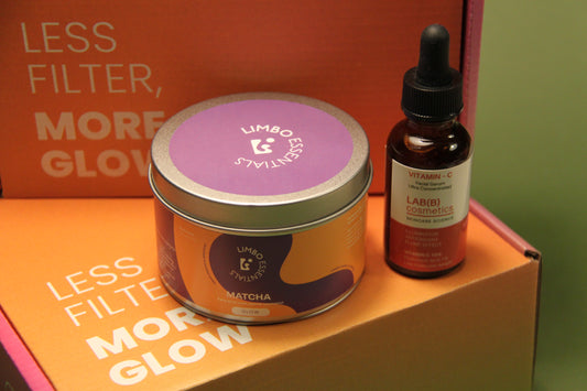 Ritual Less Filter More Glow: Luminosidad desde dentro y por fuera. Este pack une dos esenciales para una piel radiante:el Sérum Vitamina C de LAB(B) para iluminar, unificar el tono y reducir manchas, y Matcha Glow de Limbo Essentials para fortalecer la piel, el cabello y uñas desde dentro gracias a su combinación de colágeno Verisol®, vitaminas y minerales.
